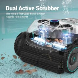 - The powerful quad-motor system utilizes up to 200W of power to filter 130 gallons of your pool’s water per minute allowing it to collect and trap more debris from leaves to dirt, to pebbles and sticks, and more.