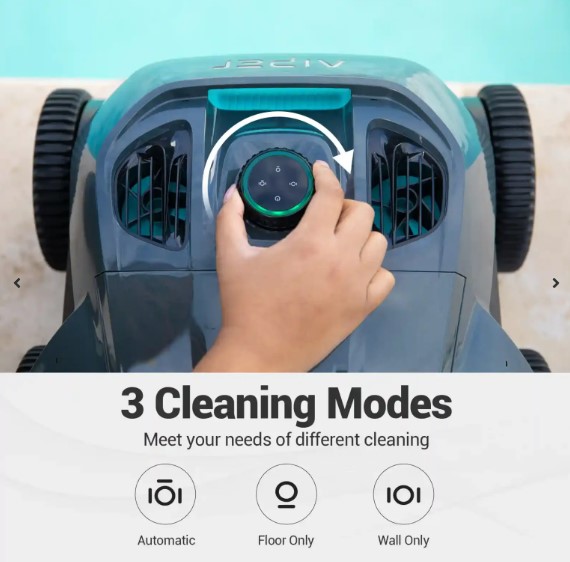 - Equipped with auto mode, floor mode and wall mode. Three modes of cleaning allow you to control your clean and target those pesky trouble spots in your pool. Simply Start the pool robot with one click and drop it in the water.