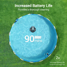 The Seagull SE features a newly designed battery that only takes 2.5 hours to fully charge and provides over 90 minutes of cleaning capabilities. It is perfect for round above-ground pools up to 33′ in diameter and in-ground flat-floored pools up to 40′ X 20′.