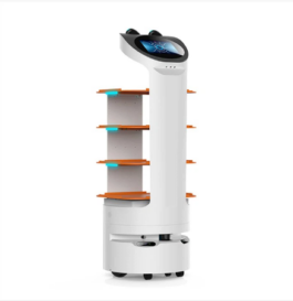 - It can automatically navigate to the designated location indoors. Multiple tables of dishes can be delivered at one time.