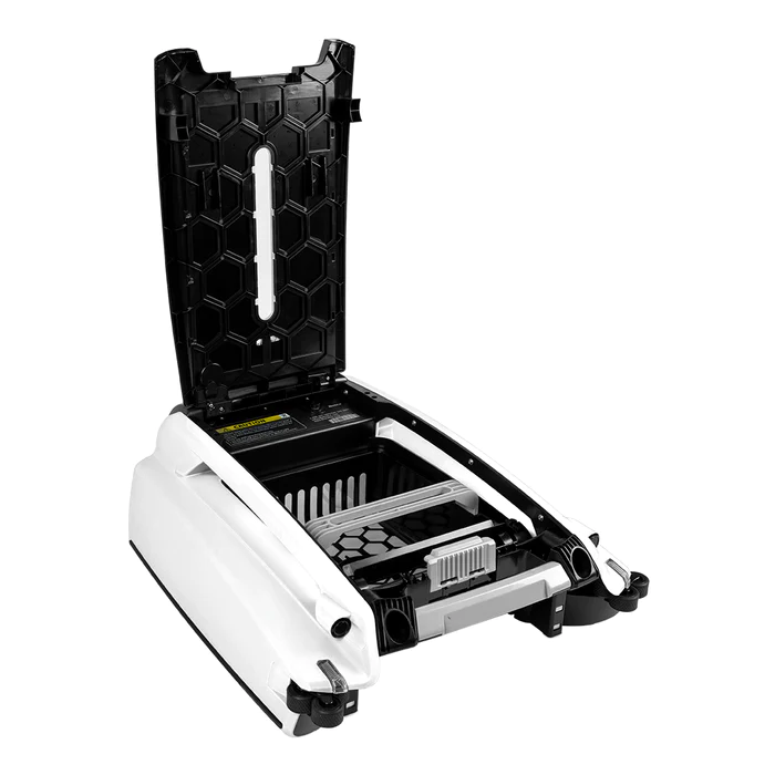 - Additionally, it has a large fine-mesh debris basket with a top handle for easy emptying, and adjustable water depth bumper rods to prevent getting stuck in shallow water.