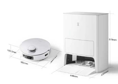 - Vacuum and mop separately or simultaneously, with powerful 6,000 Pa suction power and automatic mop lifting that scrubs hard floors and automatically lifts over carpets to keep them dry.