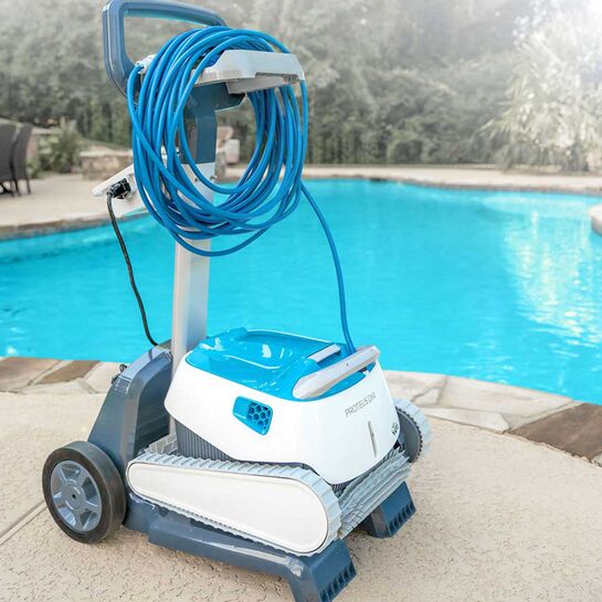 Pool cleaning made easy. The Dolphin Proteus DX4 takes the manual work out of pool cleaning. This cleaner scrubs the pool floor, walls and waterline, and filters out dirt and debris leaving your pool exceptionally clean.