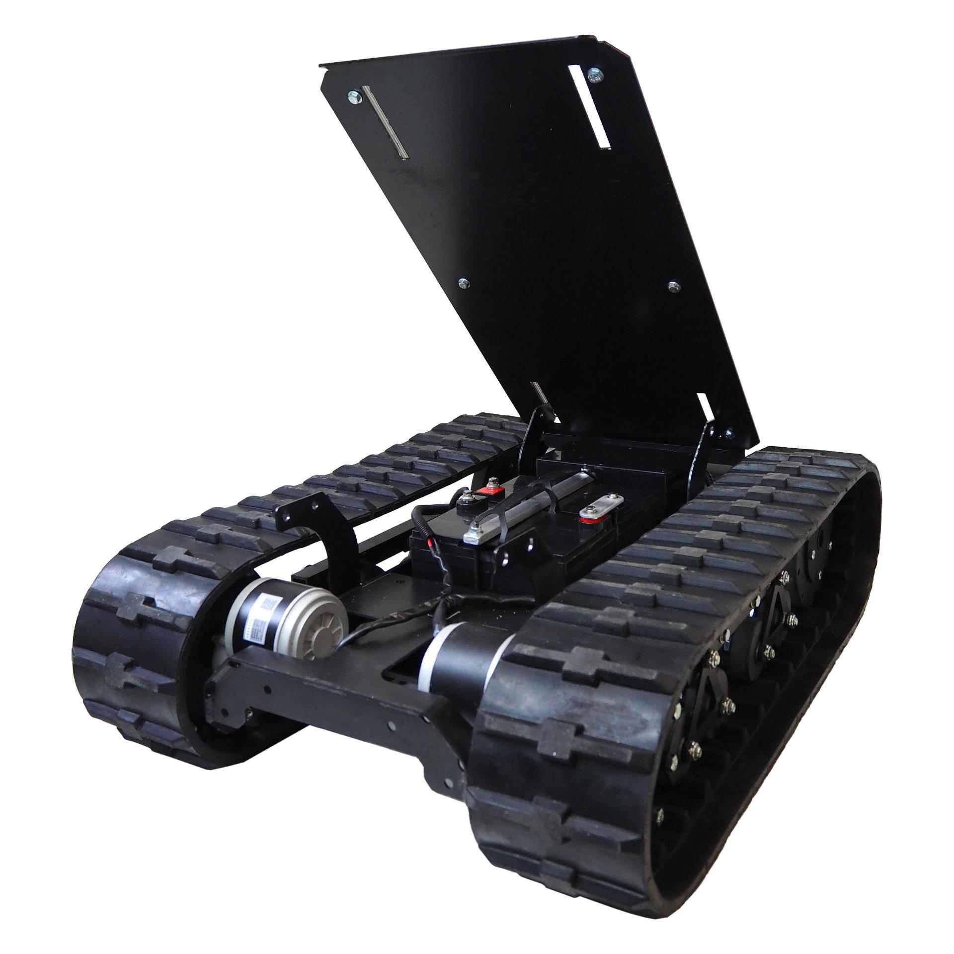 - It uses 6″ wide tracks driven by four powerful wheelchair motors, making this robot capable of hauling heavy loads and navigating difficult terrain.