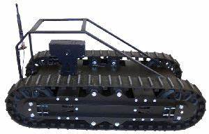 - The tracked design allows this robot to climb over most obstacles and go up and down most stairs.