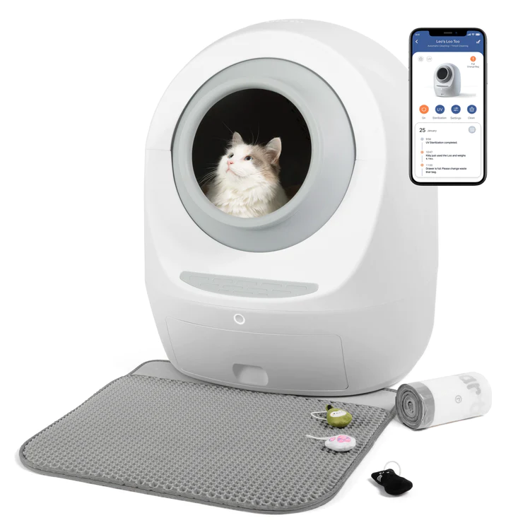 - After your cat exits the Loo, the machine projects UV rays into the waste drawer to thoroughly sterilize. The UV rays are up to 99.9% effective at eliminating bacteria, parasites and viruses.