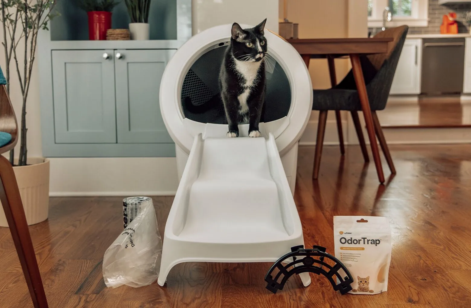 • Say goodbye to kicked-up litter and stubborn litter box odors with the Trap Bundle! You’ll receive Litter-Robot 4, a Litter-Robot Litter Trap™ Mat, OdorTrap® 6-pack, and comprehensive coverage with our WhiskerCare™ Extended Warranty.