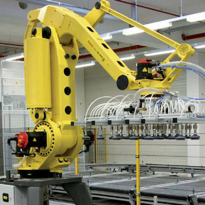 - Fitted with FANUC iRVision, the M-410iC/500 is capable of locating and handling randomly positioned boxes and other items.