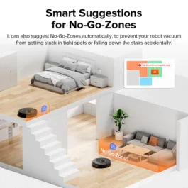 - Detects and avoids objects on the floor easily, so you don’t have to pick them up before starting a cleanup. By suggesting No-Go Zones for stairs and easy-to-get-stuck places, the Q8 Max can prevent mishaps, allowing you peace of mind while it navigates your home.