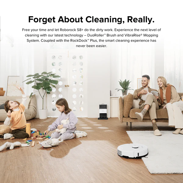- Free your time and let Roborock S8+ do the dirty work. Experience the next level of cleaning with our latest technology – DuoRoller™ Brush and VibraRise® Mopping System.