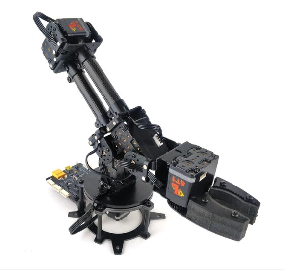 - The four degree of freedom (4 DoF) articulated robotic arm uses Lynxmotion’s Servo Erector Set (SES v2) modular construction system. This versatile setup facilitates customization and expansion for applications by adding additional brackets, electronics, sensors and more. Adding additional degrees of freedom or changing the gripper is straightforward and easy.
