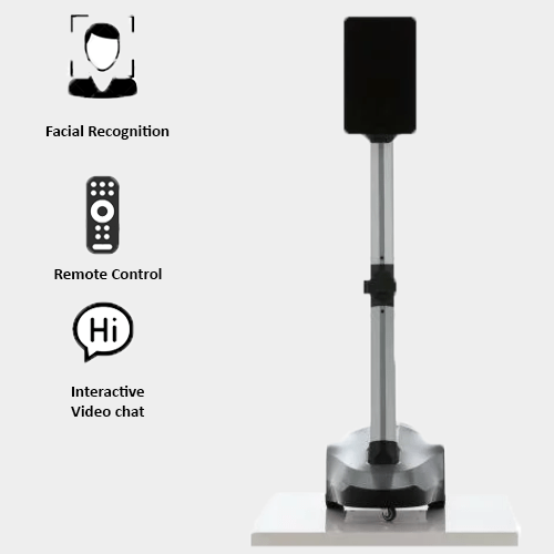 - Also, the video chat, two-way call and emotional transmission, users can have a face-to-face video communication, and accompany family anytime, anywhere. The Telepresence Robot can automatically wake you up at two meters distance. When the robot is asleep, it will wake up automatically, greet the guest or say “welcome” when the guest approaches. The SIFROBOT-4.1 can recognize customers through the face-recognition system.