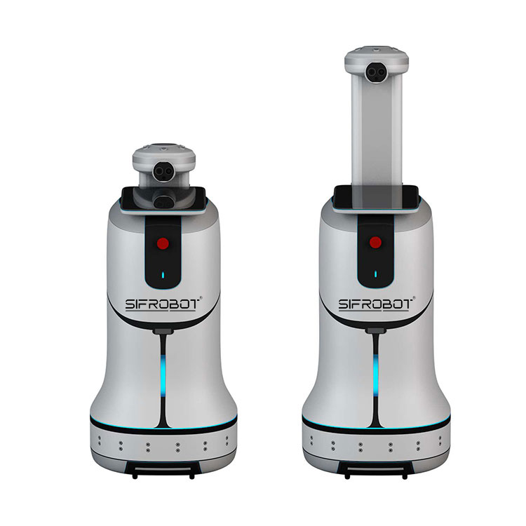 - Through the thermal imaging temperature measurement principle, the robot can detect group body temperature in real-time, and lock high-risk patients, voice alarm, manual remote monitoring, temperature measurement accuracy ±0.3°C.