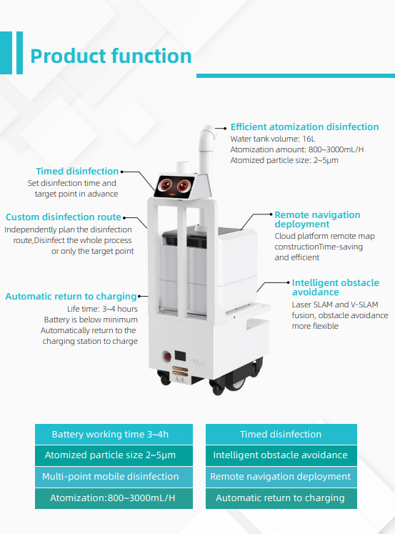 - 3000ml/h atomization volume, 360° air surface disinfection