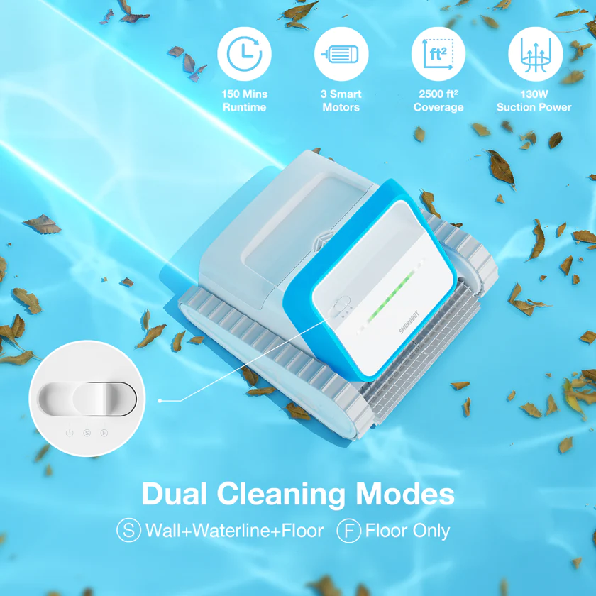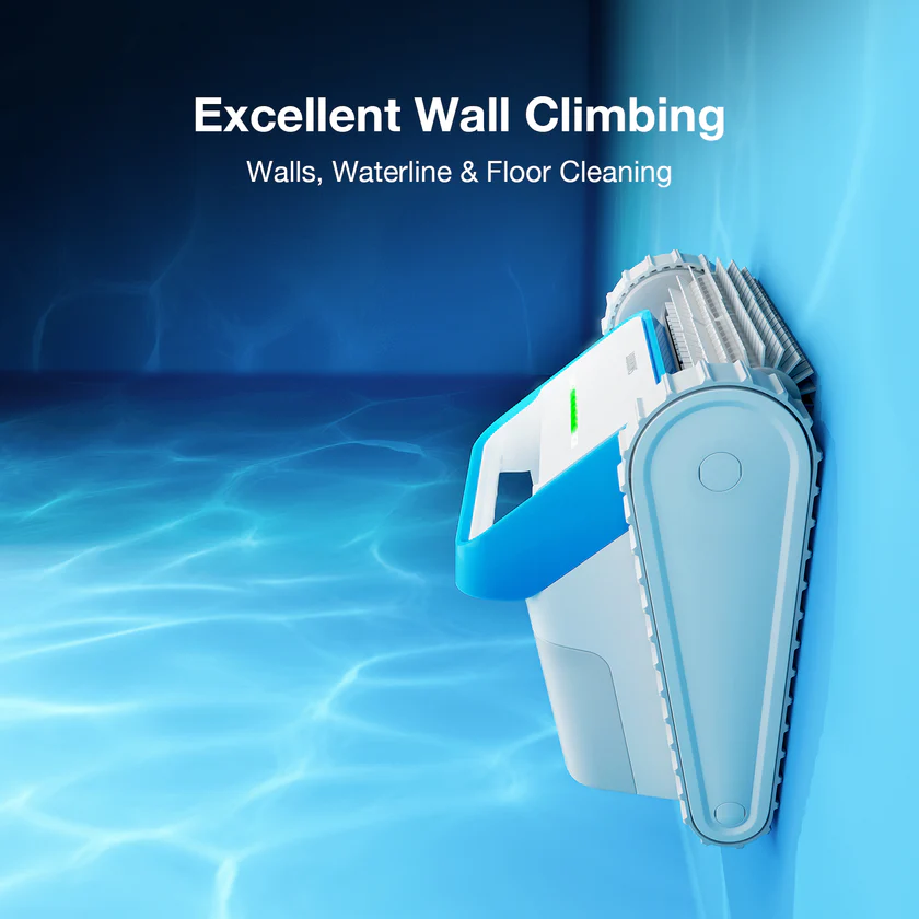 - This wall climbing robotic pool cleaner can efficiently scrub away organic stains stuck on the both walls and waterline.
