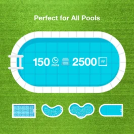 - Basically this cordless pool vacuum cleaner boasts over 150 minutes of runtime per charge and can cover up to 2500sq ft.